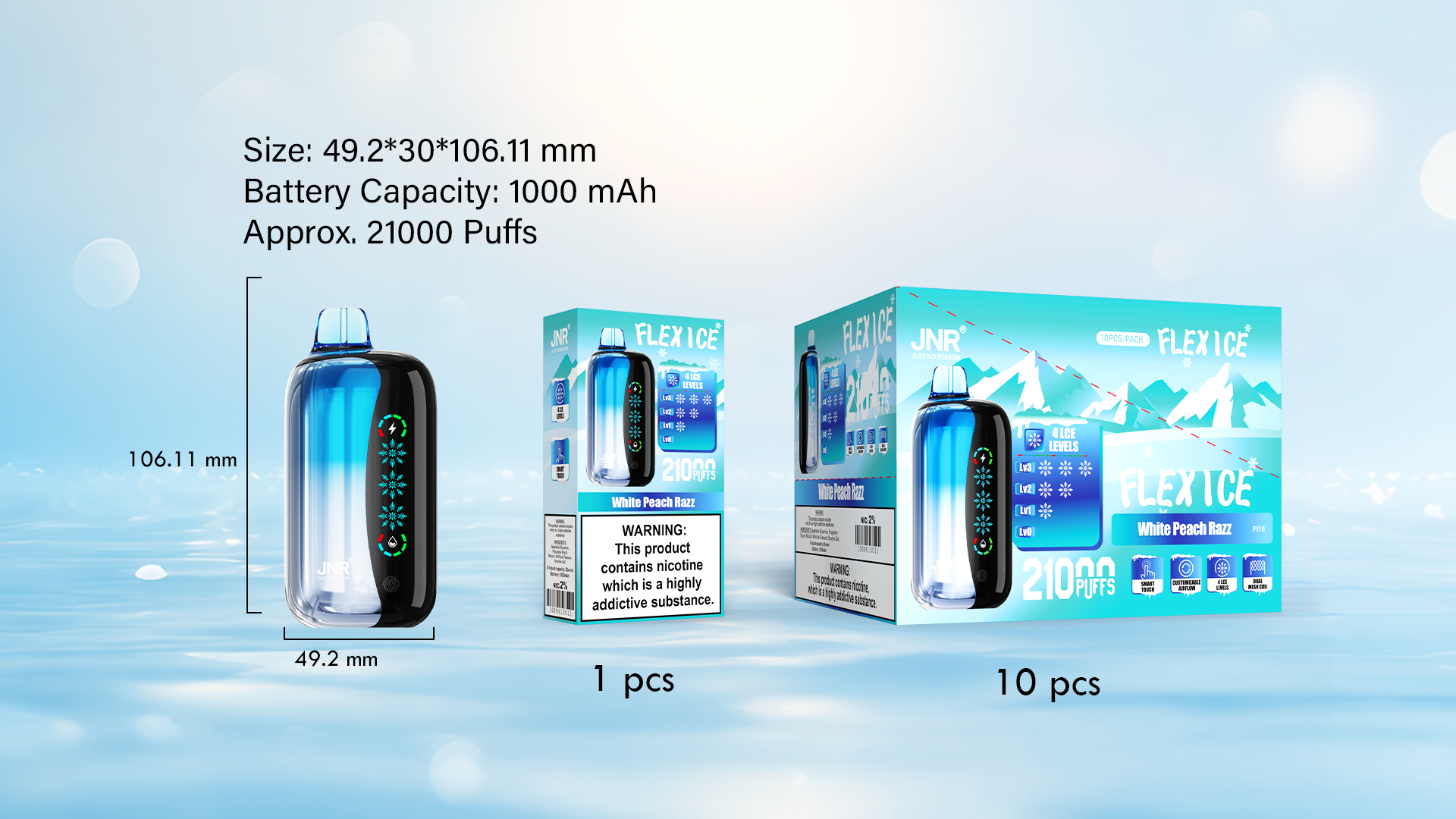 Even in cold or slightly damp conditions, the responsive screen remains smooth and reliable. The JNR Flex Ice proves that advanced technology can be both practical and stylish, making every vape session smarter, smoother, and more enjoyable.